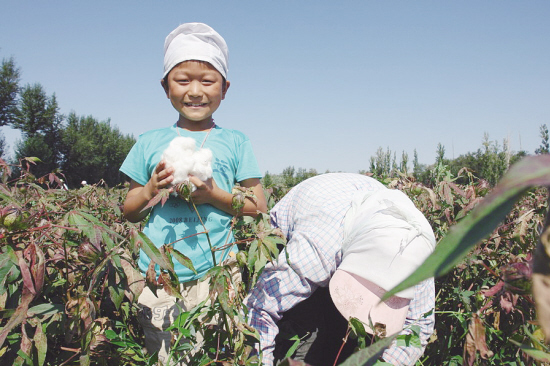 当前,北疆一些早熟品种的棉花开始吐絮,棉农和外来拾花工已经开始下地采摘。据了解,由于当前不是棉花大量采摘期,北疆地区的棉花采摘价格每公斤在0.5—0.7元之间。根据目前棉花采摘价格,许多棉农预测,到了棉花大量采摘期,有可能增加到每公斤1元;棉花采摘劳力紧张的地方,采摘还可能突破每公斤1元这个价格。图为农七师126团小学三年级学生赵宝利用