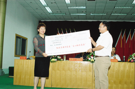 仪式上,一张汇集着红云人爱心和希望的支票从红云集团工会综合办副主任华业顺手中交到了巧家县主管教育的副县长余佑奇手中,支票上写着几个红色的大字--红云集团巧家县“爱心助学基金”,这是红云人帮助24名巧家学子能顺利完成大学学业的真心与诚意。