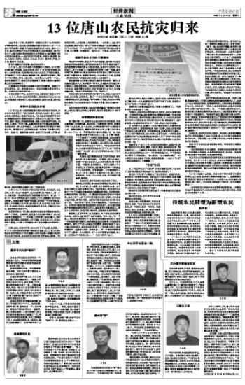 13位唐山农民抗灾归来
