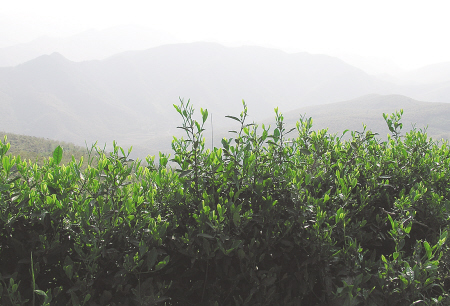 进入老屋,墙上有不少“文革”时遗留的标语,如:“发扬团结,争取胜利”,“以粮为纲,全面发展”等。屋里陈设破旧,仿佛几十年来未曾改变。硬泥地上,有几个大竹匾,盛放着不少茶青,可惜摊晾略厚,估计这些鲜叶加工后,对成品茶是有一定影响的,也许这是土法制茶所常见吧。