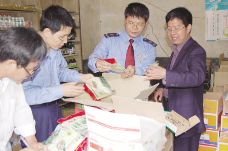 近日,随着春茶的大批量上市,北京、济南、上海等茶叶市场严把质量关,对进场茶叶的农残、含水量等进行严格检查,在工商等部门的抽检中,都有较高的合格率。图为福建安溪县工商局、农业与茶果局、供销社、茶业总公司等联合组成督查小组,对各乡镇市场进行检查。赵郭峰 摄