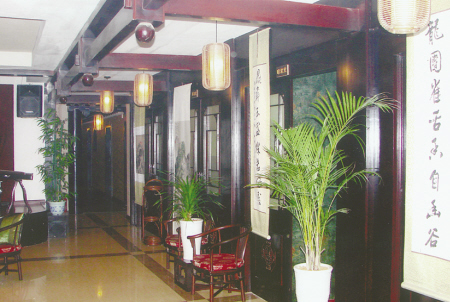 走进茶楼,典雅的中式装修和仿古家具,配以错落有致的名家字画,充满古朴、典雅的文化气息;20余间风格各异的茶室令人心旷神怡。在古筝的弦乐中,置身于茶香氤氲,使茶客平添几分舒适。