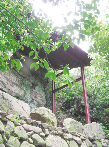 时值谷雨,无意流连茶园飞翠、毛竹涵青,径直来到银山南麓。它宛若处子,静娴伫立,山脚下,小溪潆洄,水流沄沄,水草芊芊。踩着碎石铺就的小路攀缘而上,绿丛掩映中,飞檐翘角,著名的唐代摩崖石刻近在咫尺。