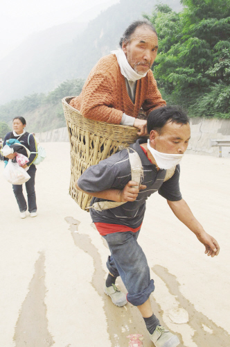 | 四川“5·12”大地震给北川羌族自治县、汶川、都江堰等灾区带来特大灾难,北川县城遭到毁灭性重创,灾民纷纷撤往安全地带。陈文 摄 |
