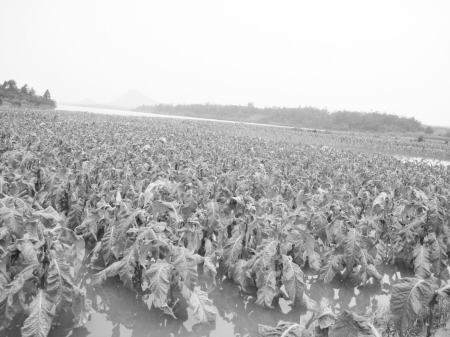 可是洪水无情,6月11日至13日的短短36小时内,富川平均降雨量达280.1毫米,全县烤烟过水面积19831亩,洪水淹过烟田垄体的面积达11990亩,其中洪水淹没烟田垄体24小时以上仍未消退的烟田面积达3925亩,烟农的丰年、丰产的美好希望随着洪水不断上涨淹没烟株的那一刻破灭了,对于以关爱烟农、精心呵护烟叶生长为神圣使命的广西烟草技术员,何尝不痛心疾首?“但我们是烟草人,越是在困难面前,我们越要坚强,用我们能够采取的一切有效措施,帮助烟农积极开展灾后生产自救,将损失降到最低限度!”在此次洪灾中贺州灾情最为严重的朝东烟站站长唐志友逢人便这样说,他和他的站友那忙碌的身影不断穿梭在洪涝灾害中的田间地头。