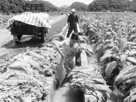 朝东镇秀水村,是受灾农户最集中的烟区。烟农毛兴来一个人种植60多亩烤烟,在这次洪灾中,受灾面积40多亩。6月13日一早,唐站长不顾大雨倾盆,也不顾淹到路面达60公分深的洪水,他找来一根木棍,像盲人探路一样趟过激流的洪水。他首先来到毛兴来家中,鼓励他要振作起来,积极进行灾后自救。毛兴来沮丧的说:“还有什么用,一株烟都被淹了十几张叶子了,烟叶上裹满了淤泥,一到烟田看到被水淹的烟叶,我饭都吃不下,觉都睡不着,我还有什么心思?”唐站长哽咽地说:“我理解你的心情,遭受那么大的损失,换了谁都一样难过!但灾害已经发生了,我们要振作起来,想尽一切办法进行抢救,把损失降到最低。你的困难我们会及时反馈给上级公司,我们会和你一起渡过这个难关!”说完,他有力地拍了拍毛兴来的肩膀,忍住快要流出来的泪水。毛兴来也激动了,紧紧地拉住唐站长的手说:“虽然今年我家烟叶遭受了洪灾,经济受到了一定的损失,对我打击也很大,但冲着站长的这一举动,我要振作起来,搞好生产自救。明年我还继续种烤烟!”在唐站长的动员下,以毛兴来为代表的秀水村的种烟大户,正积极有序地开展着灾后自救。唐志友站长的形象,不过是在洪水肆虐过的贺州、百色、河池、桂林等烟区广大烟草烟技员的一个缩影。