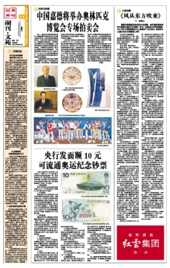 中国嘉德将举办奥林匹克博览会专场拍卖会