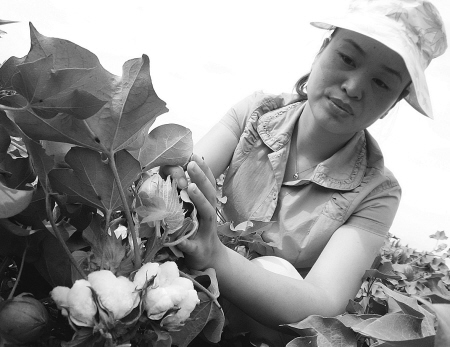 近日,在新疆生产建设兵团农五师89团八连棉农王明金的棉田里,朵朵棉花提前吐絮。吐絮时间与去年相比提前了13天,这在该团20多年种植棉花的历史上也是不曾见到的。至此,该团今年种植的9.2万亩棉花陆续绽放。据了解,棉花吐絮提前与今年进入6月以来的少雨天气,气温明显偏高有关。光热充足,使棉花获得有效的生长积温,促使棉花生长加快,发育提前,从而使棉花早熟。刘世全 摄