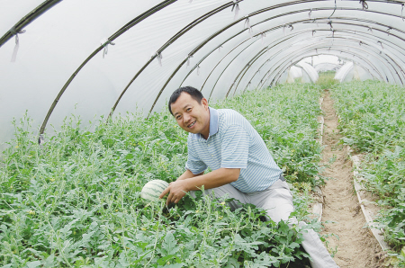2006年,一些有商业眼光的农民将大棚西瓜引进衢州,这为正在寻找推广办法的丰收园带来了机会。西瓜的经济效益要高于果树,但是长期沿袭的习惯,西瓜种植户习惯于使用进口肥。丰收园给西瓜用户送去样品肥,让他们试用。结果过了半个月,方利明再去看时,肥料仍放在原处。农户反映,不敢用。大棚西瓜多为滴灌施肥,因为用普通的化肥,渣子比较多,容易堵孔,大棚西瓜一年能够成熟五茬,如果肥效时间不够长的话,西瓜藤子容易倒掉,影响挂果。没有办法,方利明提出跟种植户签订施用合同,如果用坏了,就赔偿种植户的损失。