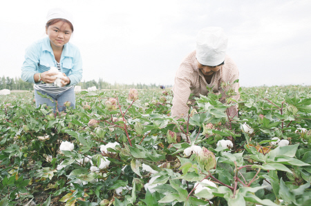 今年,新疆生产建设兵团棉花播种面积为785万亩,在经受了低温、霜冻、冰雹等自然灾害后,获得了丰收,并已进入采摘期。图为棉农正在采摘新棉。 中新社发 志 君 摄 ( cnsphoto )
