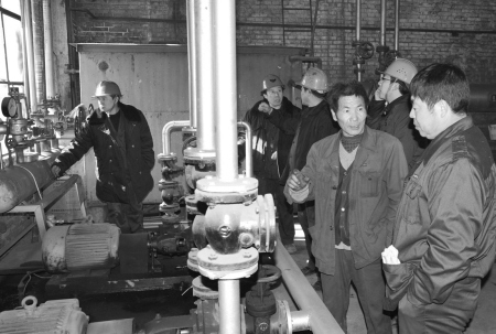 河北钢铁集团唐钢股运输部推行的现场“垂直”办公问责制,使基础管理考核工作更加高效、快捷。近日,该部组织职能部门管理人员深入现场进行全方位检查,对不合格项开出整改通知单,责令整改。图为该厂工作人员带领检查组人员正在现场检查特种压力设备。 刘会军 摄