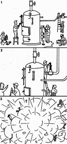 3、第二天早班司炉工上班后便启动锅炉,通火升温。到了下午锅炉爆炸,造成2人死亡,2人重伤。