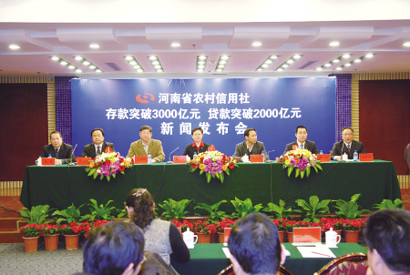 截至2009年2月末,河南省农信社存款突破3000亿元,达到3027.42亿元,占全省银行业金融机构存款总额的17.89%,自2005年4月以来,河南省农信社存款余额一直稳居河南省银行业金融机构首位。该联社贷款余额突破2000亿元,支持地方经济发展和新农村建设的资金实力进一步增强,支农主力军作用日益彰显。(本报驻河南记者 李进富 摄)