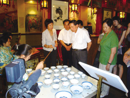 5月21日,宣武区委副书记杨素荣,区委常委、组织部部长赵林华陪同市委届中考察组组长陈继平一行6人到老舍茶馆参观考察。尹智君总经理亲自迎接,并引领考察组成员参观了企业经营场所,详细介绍了企业发展成果。在考察活动中,陈继平组长赠言老舍茶馆:“文化茶馆有文化”。