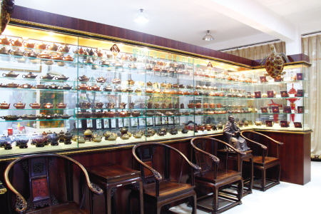 要说紫砂市场,丁蜀镇到处可见。大的有东方紫砂街、江苏省宜兴紫砂工艺厂方圆紫砂展销厅、新建的中国陶都陶瓷城,小的是壶庄壶店,在丁山解放路上一家挨一家。各地壶商有去宜兴拿货的,也有依自己的设计在那里订做产品的。