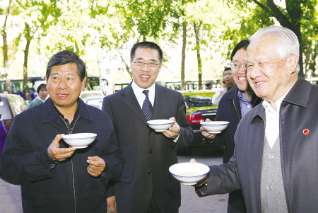 10月14日,第九届全国政协副主席陈锦华在北京市政协主席阳安江、宣武区委书记王宁、区政协主席张文华的陪同下来到老舍茶馆。