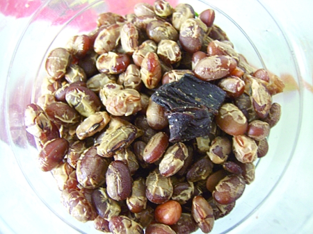 五香煮豆是黟县家家户户的餐桌上都少不了的食品,尤其是早餐吃稀饭时,它是最好的佐餐食品。外硬内酥,越嚼越香;随食随取,佐酒佐餐,老少皆宜;长期存放,不会变质。制作五香煮豆的主要原料就是黄豆,作料包括:精盐、鸡精、八角、桂皮、白糖、酱油、萝卜、笋片等。