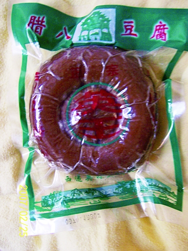 腊八豆腐,顾名思义要在腊月里制作。先把豆腐做成直径约6寸、高2寸的圆形,上部中间凹进一宕,放适量食盐,经在太阳下曝晒,盐份逐渐渗入,体形也缩小了,豆腐日渐变黄变硬,即成腊八豆腐。黟县人常以腊八豆腐远寄旅外亲人,以示不忘乡情。