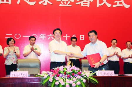 本报讯(记者 米雅娜)6月18日,中华全国供销合作总社与河南省政府在郑州正式签署《加快供销合作社改革发展 服务社会主义新农村建设合作备忘录》。全国供销合作总社党组书记、理事会主任李成玉与河南省政府省长郭庚茂分别代表双方在合作备忘录上签字。总社党组成员、理事会副主任戴公兴,河南省政府副省长刘满仓分别在签字仪式上致辞。总社监事会副主任诸葛彩华一同出席签字仪式,河南省政府省长助理何东成主持签字仪式。