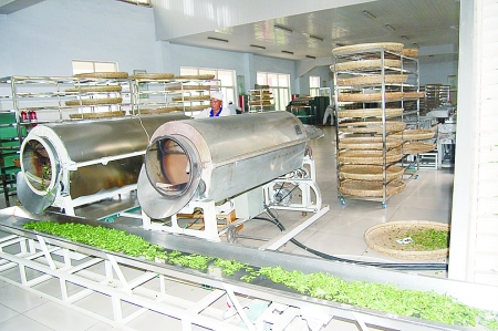 尽管炎炎夏日,但日照大部分茶厂还在进行夏茶的加工。图为日照碧波茶业公司的现代化加工厂。