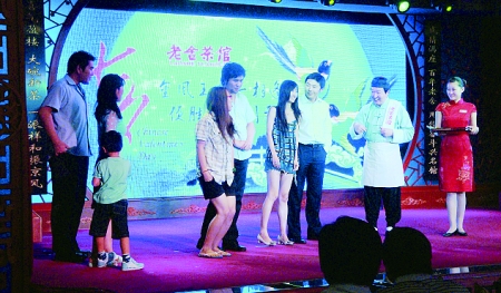 2010年8月16日,老舍茶馆举办穿针乞巧游戏,邀请现场的情侣朋友共同参与。我们准备了7根针和7根七彩线,哪组用时最短,成功穿上了7根针,哪组就是获胜者。很多客人对我们的活动产生了浓厚的兴趣,都踊跃的来参加。