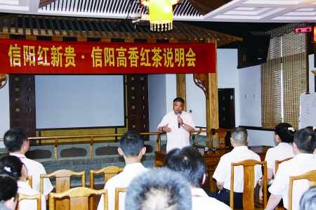 7月17号,信阳文新茶叶有限责任公司在浉河港文新茶叶加工园举行“信阳红新贵·信阳高香红茶说明会”,文新公司董事长刘文新等相关领导出席说明会。西南大学教授、博士生导师、西南茶叶研究所所长刘勤晋对信阳红·红茶的生产研发及销售做了分析,并提出宝贵意见。