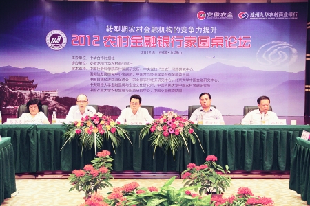 8月25日,“2012农村金融银行家圆桌论坛”在安徽省池州市九华山中心大酒店隆重举行。