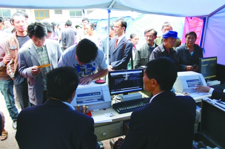 图1:周边的村民正在毛坪村洛泽河政府院内搭建的“帐篷银行”办理业务。