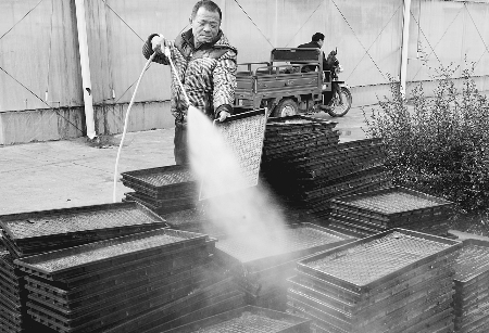 2月20日,浙江省义乌市健源水稻专业合作社的农业工人,正在忙着清洗消毒秧盘。