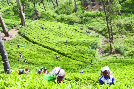 看过阳光茶叶公司的办公地,其生产、制作基地也不能漏掉。在努瓦拉埃利亚区,团员们走进了阳光公司的茶园和茶厂。由于气候和地理位置的影响,斯里兰卡的茶树每七八天发芽一次,所以这里一年四季都可以采摘茶叶。到达时,刚好看到采茶工正在茶园劳作,于是大家纷纷登上茶山,体验这难得的斯里兰卡采茶生活。少见的是,斯里兰卡采茶工将所采摘的茶青放到麻袋里,并且是戴着手套采摘的,这异于中国采茶工徒手采茶、用竹筐盛装茶青。