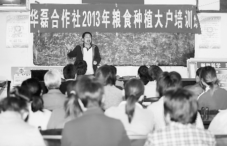 5月3日,安徽淮北市濉溪华磊合作社的农技人员在韩村镇双沟村给农民进行小麦“一喷三防”的有关培训。当前正是小麦抽穗灌浆和防治病虫害的关键时期,安徽小麦主产区濉溪县广大农民按照农技部门的统一部署,及时做好小麦扬花灌浆水的浇灌和“一喷三防”管理工作,确保该县180万亩小麦丰收。