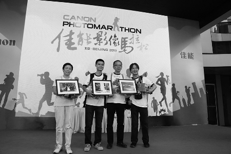 5月25日,500名装备着佳能各式“长枪短炮”的摄影爱好者齐聚北京时尚之地——三里屯SOHO,3个拍摄主题、5个小时的时间、往返18公里的距离、上百台佳能最新款打印机、几千张北京城市风貌照片,在有限的时间和空间内构成了首届“佳能影像马拉松”这场影像饕餮盛宴的主要元素。图为三位获奖者与佳能(中国)有限公司董事长兼首席执行官小泽秀树(左三)合影。