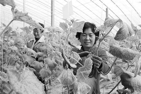 12月3日,河南平顶山市湛河区鑫业绿色蔬菜种植合作社,社员们正忙着采摘迷你袖珍小黄瓜。该社有110多户农民合伙, 鼓励农民通过“带地入社”、“劳力入股”的形式,抱团发展“绿色蔬菜”种植。合作社严格按照生态农业的种植标准进行管理,所生产的绿色蔬菜环保、安全、口感好,深受本地市民的青睐。据统计,自去年以来,该合作社每年都要为平顶山市供应百万斤以上的蔬菜。