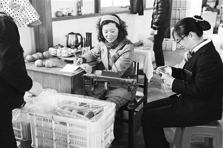 山东省蓬莱市农村信用合作联社抓住当地果品陆续上市的有利时机,主动和客户沟通,搞好资金投放和上门服务,及时发放果品收购资金6856万元。截至10月末,该联社各项存款比年初增加9.85亿元,增量存款市场份额占当地15家金融机构总额的52%。图为该联社工作人员上门收款。
