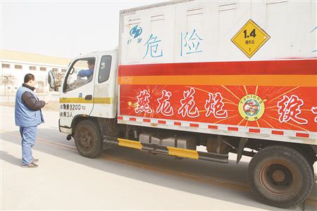 检查完车辆,姚洪亮又检查了自己的证件,然后和两名押运员向仓库开去。他说,现在烟花爆竹的运输和储存都有严格的规定,一辆运输车要求配备一名司机和两名押运员,这些人员都要求有从业资格证,还要通过危险货物运输押运人员运输管理局和所服务单位审核,只有通过三方的审核才能从事这个工作。押运过程中司机和押运员必须携带资格证,否则个人和公司都要受到严厉的处罚。由于烟花爆竹属于危险品,要尽量减少在公路等公共场合停留的时间,所以运送要避开上午6—9点、下午4—8点的早晚高峰时段,他们只能在其他时段进行配送。