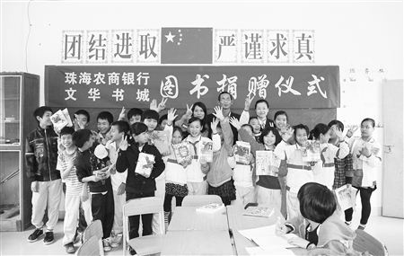 近日,广东珠海农村商业银行与珠海文华书城向广东省珠海市乾务镇乾隆小学捐赠建立“金海洋书屋”,正式启动公益捐书项目。珠海农商行在全行97个营业网点开展健康书籍捐赠活动,共收集捐赠健康书籍1500余本。 匡瑞 摄