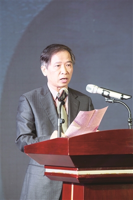 图为广东省农村信用社联合社理事长周高雄在发布会上致辞。刘 哲 摄