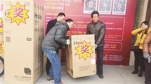 图8:江苏东台农村商业银行组织“紫气东来,金猴送福”主题抽奖活动。凡1月1日至3月30日期间办理业务,均可以参加“普天同庆”天天幸运抽奖活动,储蓄客户还可以参加“鑫存感激”定期百万抽奖活动。截至目前,该行已经抽取大奖两期,中奖人数170人,送出奖品总价值超过25万元。图为东台农商行客户抽中大奖。