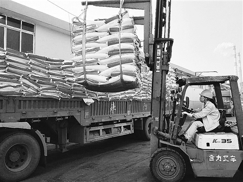 在湖北新洋丰肥业股份有限公司荆门总部基地,来自全国各地前来装货的车辆排成了“长龙”。据介绍,硫酸钾复合肥厂和实验工厂作为该公司总部基地的两个重要复合肥生产厂,最高日销量分别达到5000吨和3000吨。为了保证装卸有序进行,该公司全员通力协作,确保及时发运。