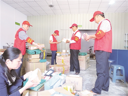 随着电子商务工作的持续火热,河南省林州市供销合作社电子商务平台——城关供销合作社“宅急送”物流配送中心内业务繁忙。图为5月24日,供销合作社志愿服务者在帮忙装卸货物、核对货单。郭德金 宋进章 摄