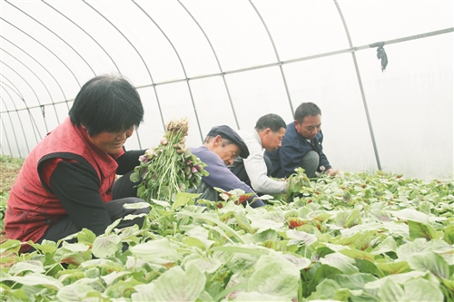 今年虚岁60的詹传安,自1976年退伍回乡后,一直在家务农。“以前我们自己种地,两天不下雨田就干了,下了雨水又排不掉。干了挖不动,湿了犁不了,就是埋头做,没把握。”他指了指菜地上方的塑料大棚说,“现在不管下雨还是下雪,都能干活,不怕旱也不怕涝。”