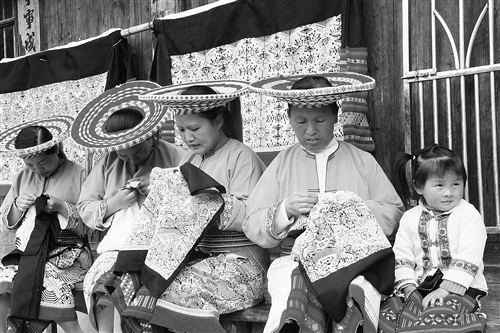 花瑶挑花是虎形山瑶寨妇女的一门传统手工艺,属全国首批国家非物质文化遗产,挑花服饰品已被联合国教科文组织和中国美术馆、民族博物馆等列为珍品收藏。为传承、创新花瑶挑花这一文化瑰宝,邵阳市妇联积极引导隆回县瑶乡妇女探索“公司+协会+妇女”的产业发展模式,创建花瑶挑花合作社脱贫示范基地,集挑花技艺传授、销售于一体,支持瑶乡妇女用自己一双巧手编织出幸福美好的生活。图为花瑶妇女在挑花。