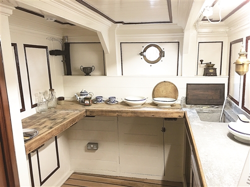 1957年以后,闯过峥嵘岁月的“短衬衫”号飞剪船,安静地停泊在伦敦格林威治的泰晤士河畔,接待伦敦来来往往的游人。大家走进船舱内部,尽管满目都是维修、整理的痕迹,但是货舱中的茶叶集装箱,仿旧的木地板,映在舱壁上的海上贸易历史片,依旧能感受到昔日海上贸易的火热。