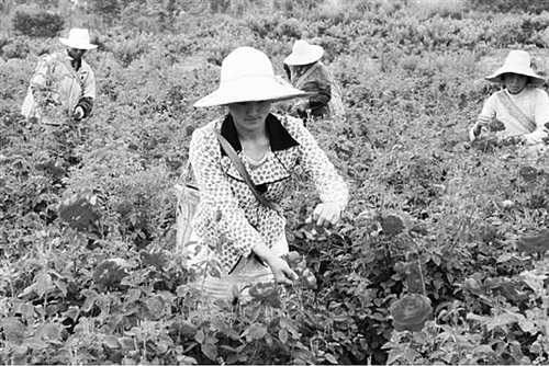 本报讯 日前,在云南省禄丰县土官镇世馨花卉合作社的玫瑰基地里,几个农村妇女正忙着采摘盛开的花朵,这是嘉华食品公司订购的可食玫瑰。
