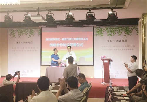 福鼎市茶业发展领导小组与陆羽国际茶业交易中心就进一步发挥福鼎白茶产业优势,助推福鼎白茶产业做大做强,共同促进福鼎白茶产业持续健康发展达成一致共识,并就建立陆羽茶交中心福鼎分中心、白茶标准评级中心、体验中心、物流仓储中心等内容签署了全面战略合作协议。陆羽茶交中心表示今后将充分发挥平台优势,全面协同福鼎市政府从文化到金融,从评级到流通等各个领域,为白茶产业的转型升级打通了多方面、深层次的产业渠道。