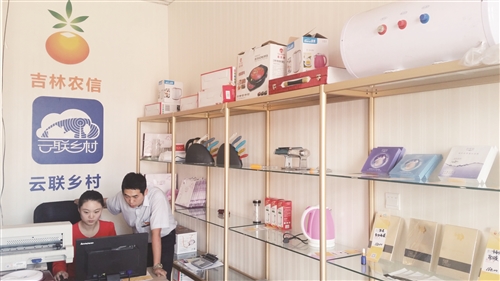 走近通榆县联社边昭信用社,记者发现,宽大的“吉林省农村信用社”牌匾旁,是一块等大的同色调设计的“吉林农信·云联乡村”牌匾。相应地,营业大厅内部的格局,也是二者的有机组合。在云联乡村店内,边昭信用社负责人赵银浩不时地充当起临时店员角色,与专职店员贺爽一样稔熟地向前来问询的地方百姓介绍陈列架上的商品。