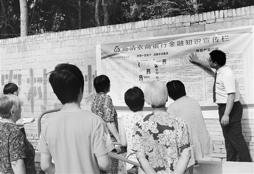 自启动“金融知识普及百乡千村”以来,山东临清农村商业银行充分发挥点多面广的优势,积极组织有关人员开展以“进社区、进村庄、进学校、进中小企业、进集贸市场”的“五进”宣传活动。截至目前,该行累计制作宣传栏2500余个,发放宣传材料4万余份,接受群众咨询800余人次。