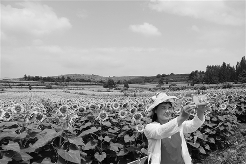 7月15日,一位游客在山西省阳城县次营镇庄头村向日葵花丛中自拍。近日,山西省阳城县次营镇庄头村千亩向日葵花竞相怒放,吸引众多市民前往观赏。近年来,阳城县紧紧围绕旅游抓农业,围绕农民抓旅游。依托土地资源,因地制宜大力发展观光农业,把种田变为“卖风光”,让美丽风景变身美丽经济,带火全县乡村游,有力地促进了当地农民增收致富。陈元梓 摄(cnsphoto供图)