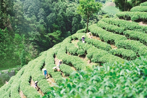 近日, 广西昭平县上万茶农抢抓农时到茶园上采摘夏茶。随着该县制茶技术的提升,以往产销不旺的夏茶也有了用武之地,主要用于制作红茶、茶饼工艺品等,提高了夏茶的经济价值。据统计,目前邵平县茶园面积达20.15万亩,上半年共生产干茶4750吨,同比增长5.6 %,实现产值5.8亿元,同比增长4.1%。