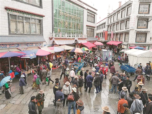 熟悉拉萨的人都知道,八角街是绕大昭寺发展起来集朝拜、居住和各种商业配套设施为一体的传统藏式建筑群,历史非常悠久,可以说是拉萨最热闹的地方。而冲赛康市场位于八角街的核心地带,主要经营各种小商品的批发零售,国内外商品琳琅满目,每天人头攒动。感到意外的是偌大一个市场里并没有像内地一样的茶叶专卖店,不过好多副食摊倒是兼卖一些茶叶,主要是云南红茶和雅安藏茶,价格都很便宜,红茶最贵的也才80元一斤,便宜的低到20元,也有从印度大吉岭过来的CTC红茶,一盒也只卖二三十元。后来通过在拉萨开茶馆的朋友了解到,最近这几年在拉萨,喝甜茶的人越来越多,特别是年轻人更容易接受甜茶,所以对红茶的需求量逐年递增,在城里已经有要超过传统边茶的趋势。